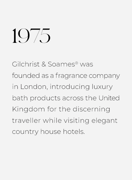 Gilchrist & Soames® originated as a luxury fragrance house and today we are renowned as an established, respected manufacturer of luxury personal care products. Our name has echoed in the finest hotels, spas, resorts, and private residences worldwide to meet the needs of the discerning traveler.