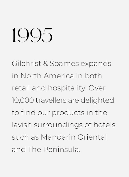 Through our five-decade journey, Gilchrist & Soames has become a time-honored luxury lifestyle brand, fulfilling its values of quality craftsmanship to deliver an exceptional experience.