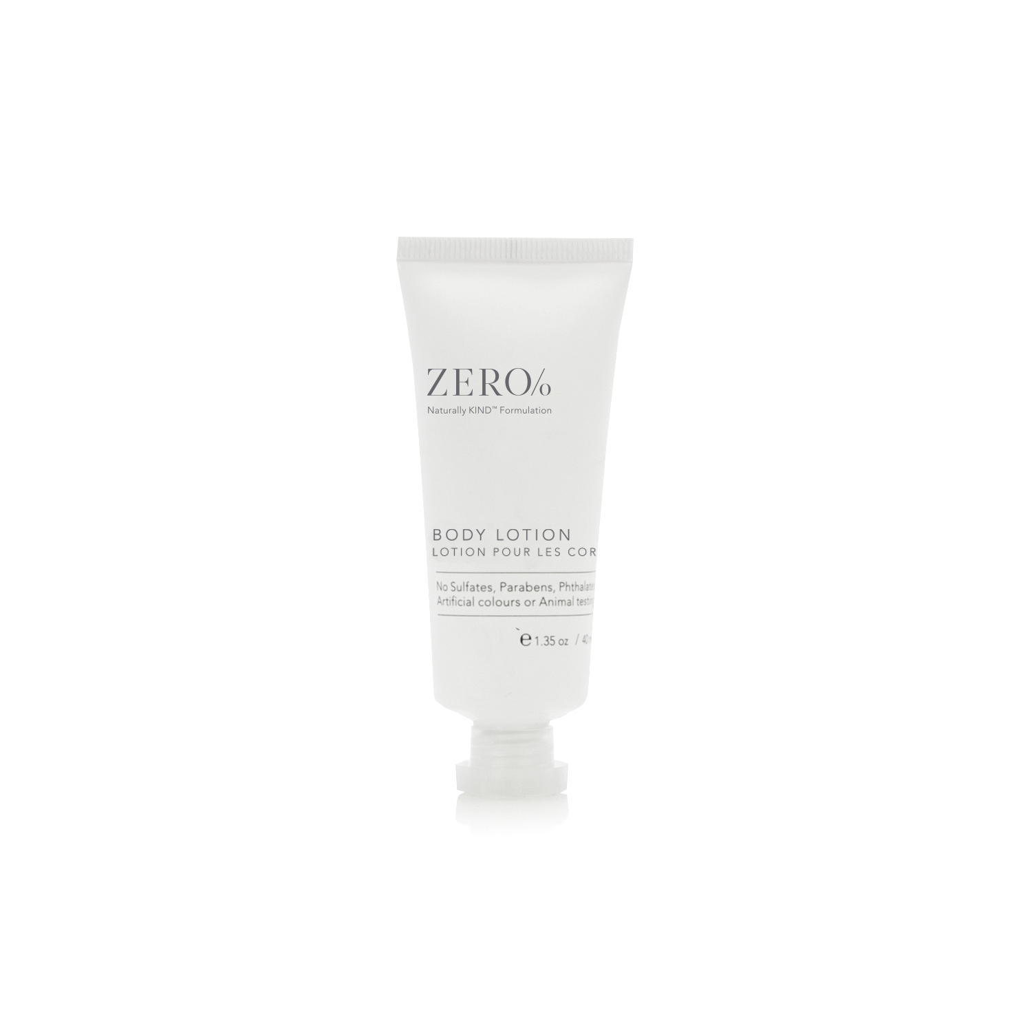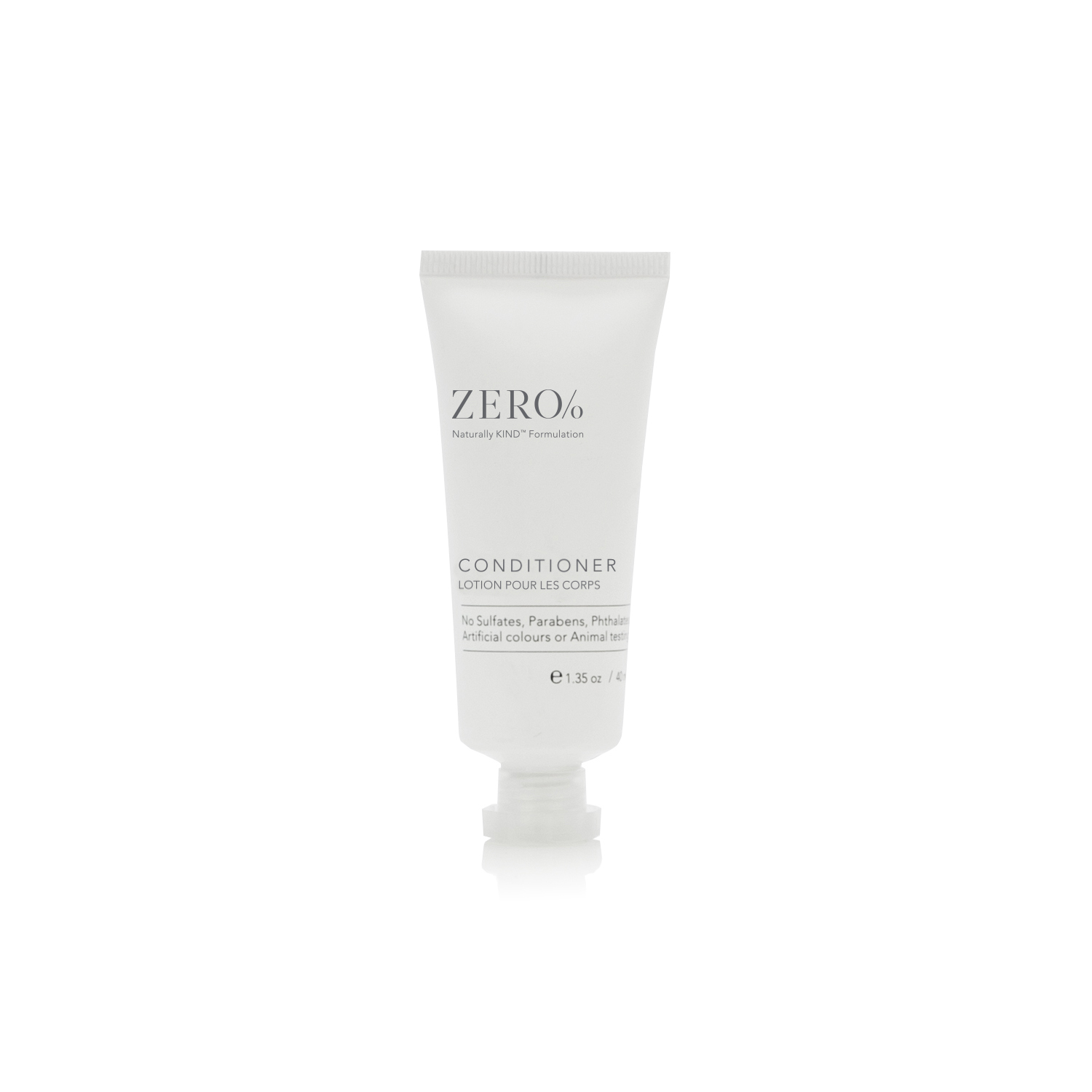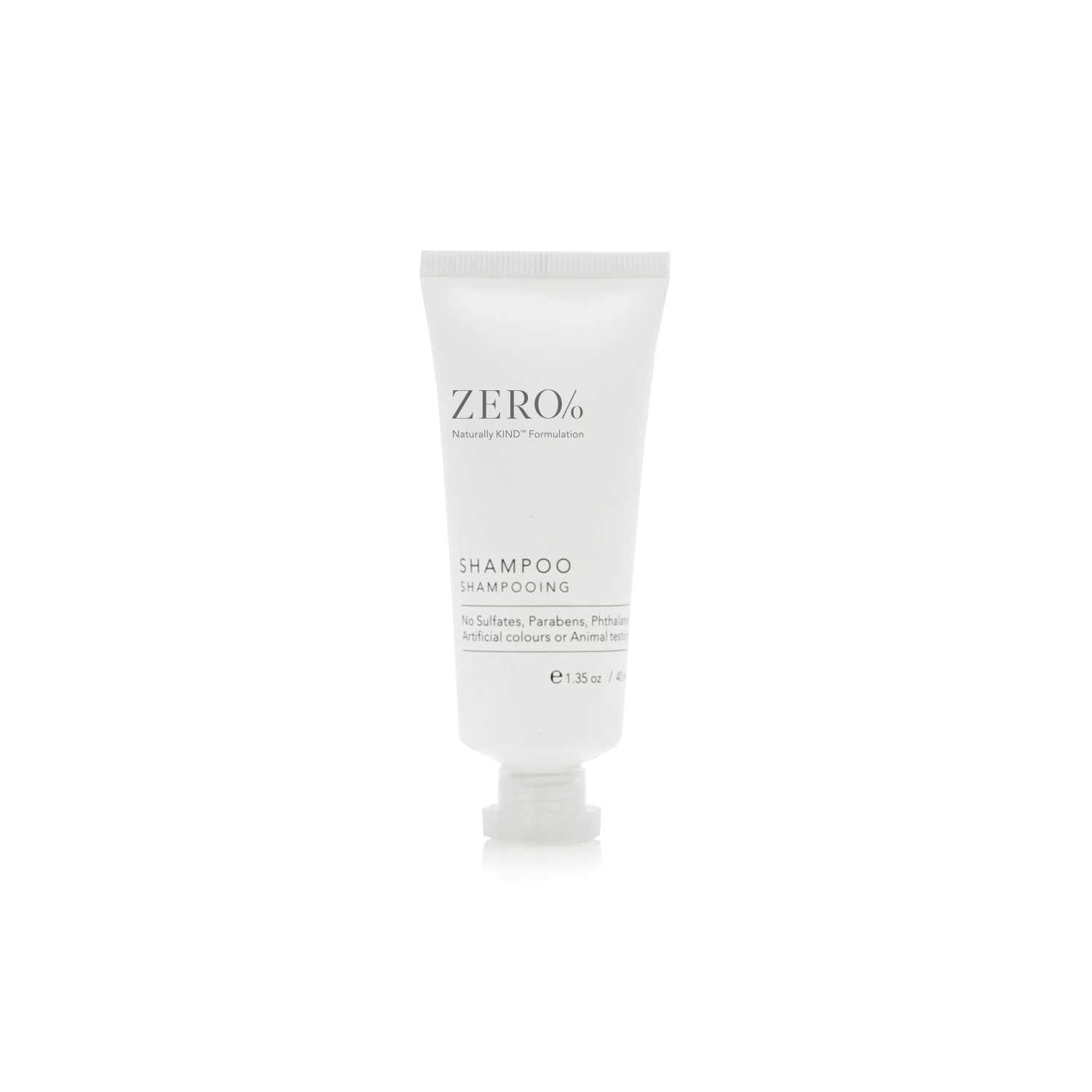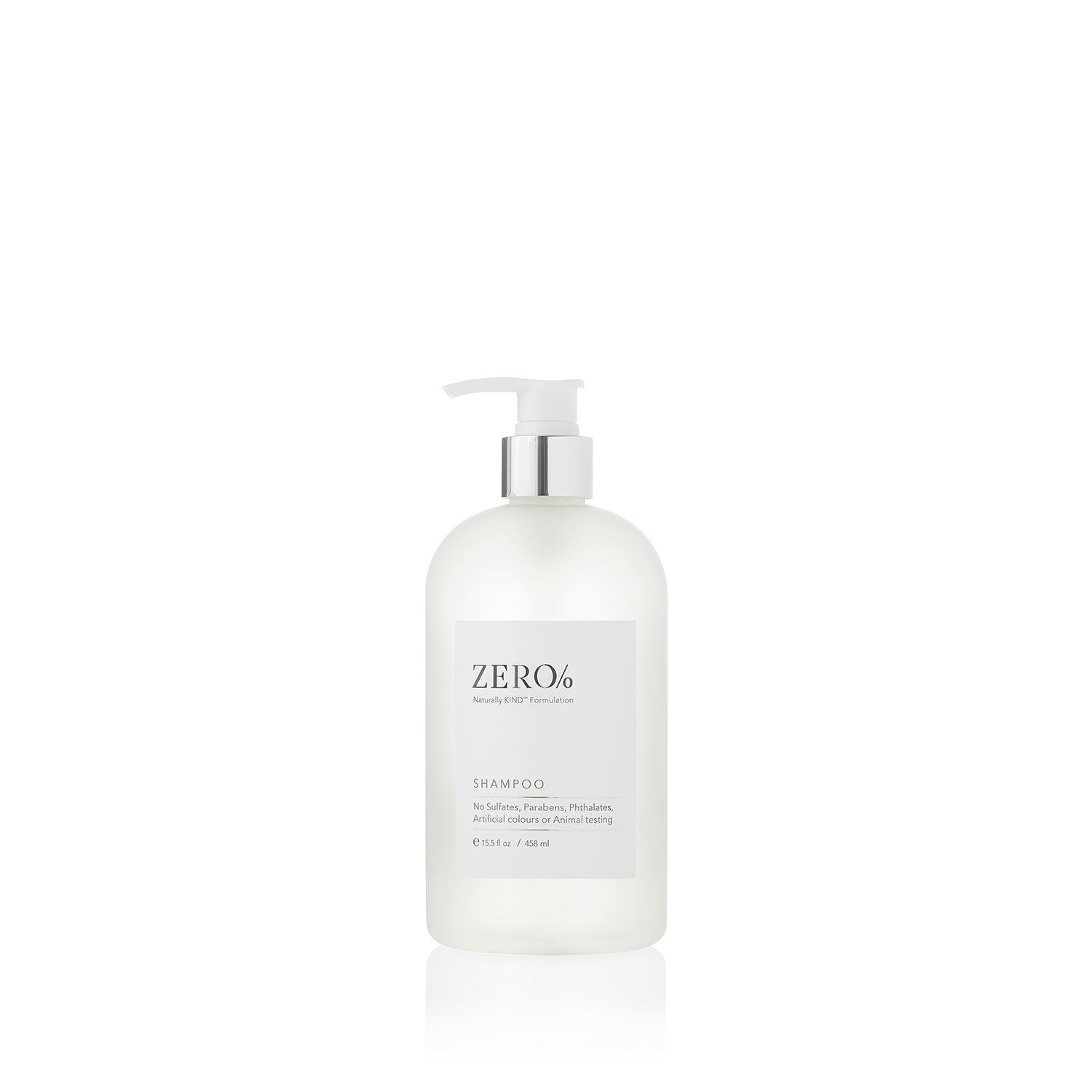 Zero% contains Vitamin E, Panthenol, plant-derived USP glycerin and natural conditioning agents, from honey and the brassica plant. Zero sulfates, zero parabens, zero phthalates, zero artificial colors, and zero animal testing – the mark of our proprietary Naturally Kind™ formulations.